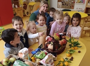 U našoj jasličnoj skupini obilježili smo Dan kruha i plodova Zemlje uz puno veselja i mirisnih zalogaja. U goste nam je došla mama naše djevojčice Ane, koja je profesionalna kuharica. Zajedno s djecom mijesila je i pekla kiflice, a mali pomagači su uživali u svakoj fazi pripreme. Radili smo i domaću marmeladu, pekli vafle te cijedili svježi sok od voća. Djeca su s oduševljenjem sudjelovala u svim aktivnostima, upoznavajući važnost kruha, truda i darova prirode.