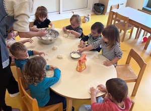 U našoj jasličkoj skupini "Girice" obilježili smo Dane kruha i jabuka kroz razne istraživačke, senzorne i likovne aktivnosti. Naši najmlađi su s velikim zanimanjem promatrali kako od brašna, vode i soli nastaje tijesto. Mali prstići su mjesili, oblikovali i izrađivali svoje "kruščiće", koje smo potom ispekli i zajedno degustirali.