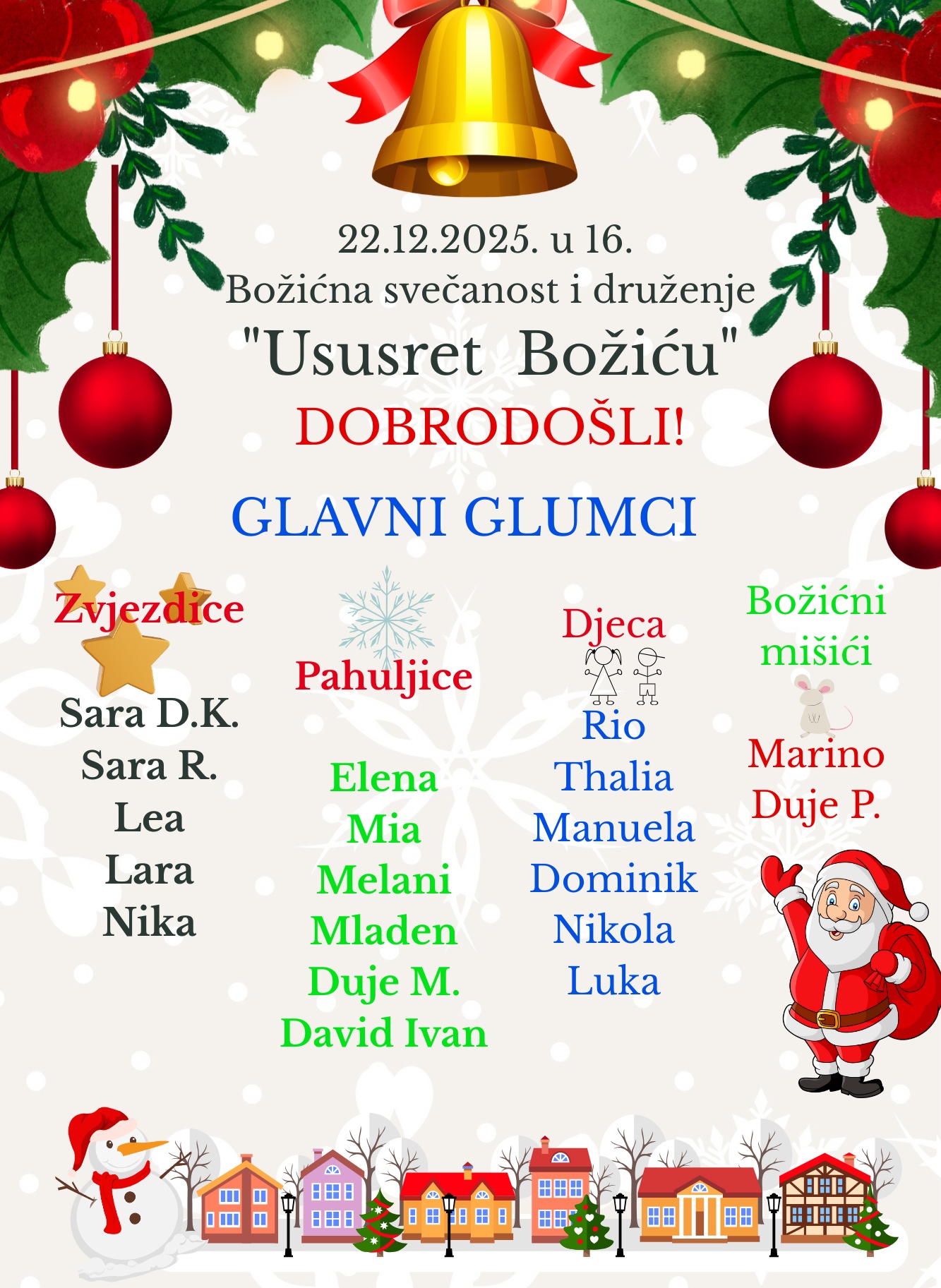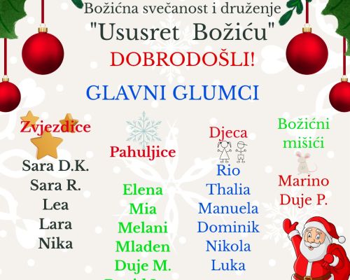22.12. u skupini "Medonjice" održao se glazbeno-scenski nastup za roditelje pod nazivom „Ususret Božiću“.