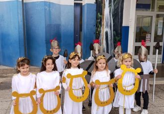 Pričajući im o Grcima jako ih je zainteresirala upravo priča o Trojanskom konju koji nam je bio maskota. Sa prigodnom glazbom i plesom predstavile su se grčke božice i ratnici.