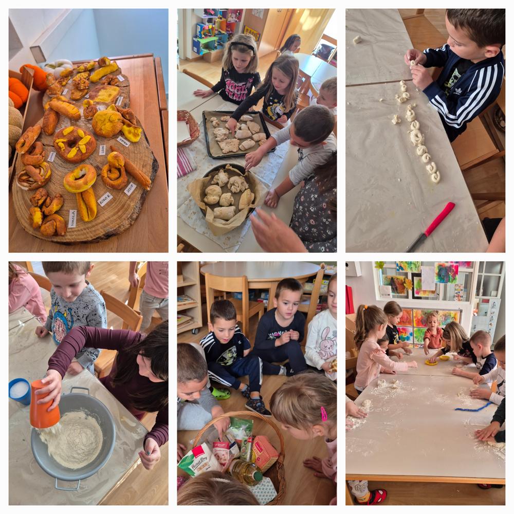 Uz aktivnosti u skupini gdje smo mijesili tijesto i pekli kruščiće, pogačice, posjetili smo pekaru „Čiovo“ i Antoničin mlin u Žrnovnici. Na taj način djeci je omogućeno iskustveno učenje putem doživljaja i raznih socijalnih interakcija. Kao pravi mali pekari sve smo i kušali te došli do zaključka „Ja da sam pekar svaki dan bi mijesio tijesto, radio bi kifliće i krafne jer su slatki“ Toni L.