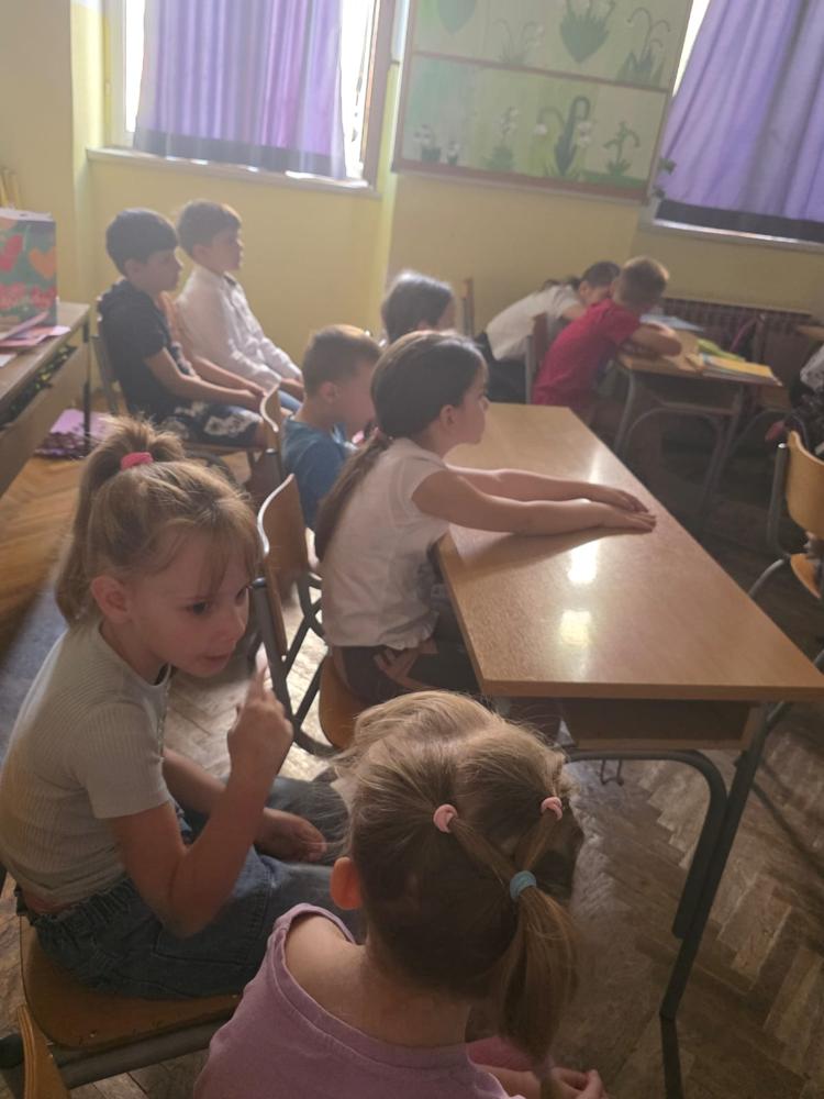 Djeca su imala priliku i sjedila u školskim klupama, družili se s učenicima i učiteljicom.