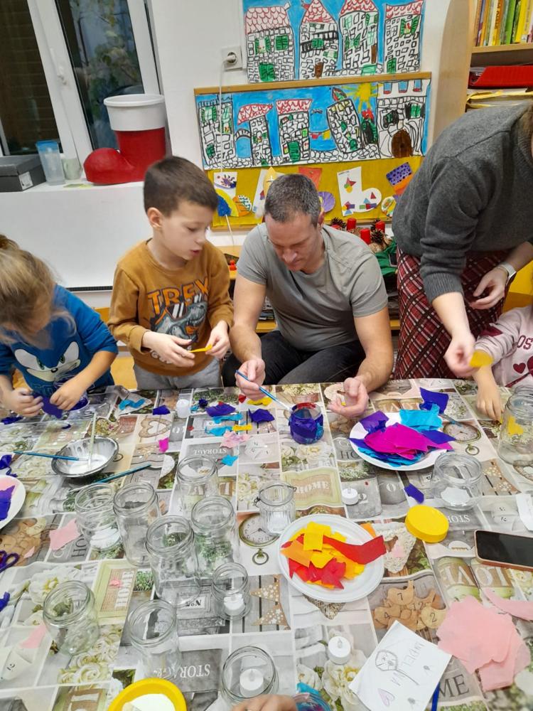 Na kreativnoj radionici s roditeljima i djecom izrađivali smo lampione simbole svjetlosti i topline u svrhu humanitarne akcije, koji su nam ujedno bili dio scene naše predstave Rodio se mali Isus.