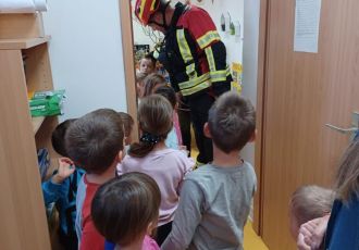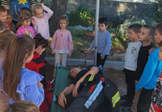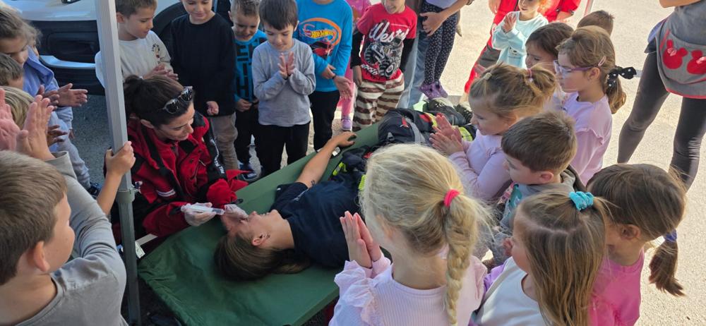 Uz pomoć vatrogasaca, policije i hitne pomoći djeca su imala priliku promatrati pravi postupak spašavanja ozlijeđene osobe - odgojiteljice koja je u vježbi "ozlijeđena" te ju je vozilo hitne pomoći odvezlo na daljnju "njegu".