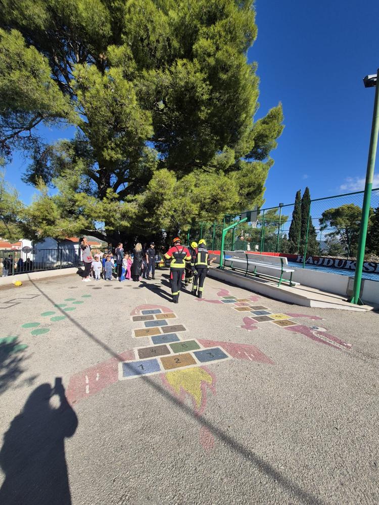 Djeca su s velikim uzbuđenjem sudjelovala u terenskoj vježbi Civilnog stožera Grada Trogira. Imala su priliku vidjeti vatrogasce, policiju, HGSS i stožer civilne zaštite na djelu.