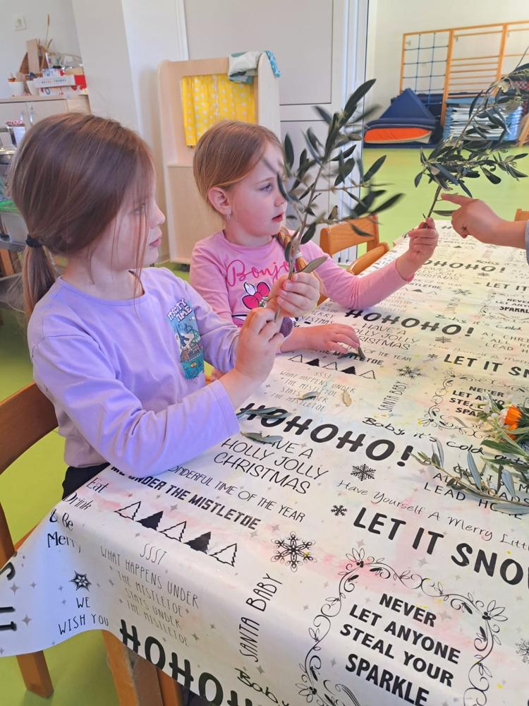 Dana 19.03. uoči blagdana Cvjetnice je održana radionica izrade datala na prijedlog mame dječaka Marka iz skupine "Medonjice". Na sam blagdan Cvjetnice (dan kada je Isus ulazio u Jeruzalem i puk ga je dočekao mašući maslinovim i palminim granama...) te prema kršćanskom običaju nose se grančice na blagoslov. U nekim primorskim mjestima pletu se grančice maslina - datale. Markova mama njegujući tradiciju i običaje iz svog marinskog kraja podijelila je svoje znanje sa nama.