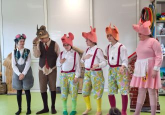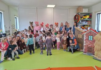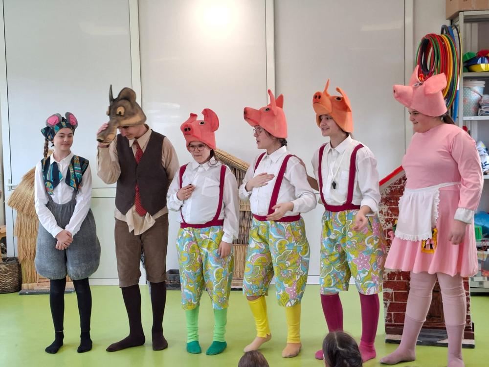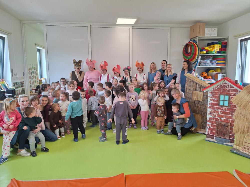 U našem vrtiću gostovalo je Kazalište "Škatula" s predstavom "Tri praščića" u kojoj su glumila djeca školske dobi starijih razreda.