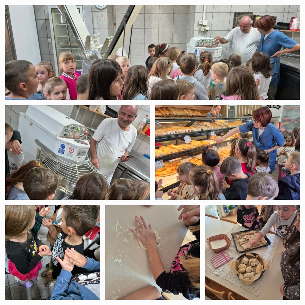 Uz aktivnosti u skupini gdje smo mijesili tijesto i pekli kruščiće, pogačice, posjetili smo pekaru „Čiovo“ i Antoničin mlin u Žrnovnici. Na taj način djeci je omogućeno iskustveno učenje putem doživljaja i raznih socijalnih interakcija. Kao pravi mali pekari sve smo i kušali te došli do zaključka „Ja da sam pekar svaki dan bi mijesio tijesto, radio bi kifliće i krafne jer su slatki“ Toni L.