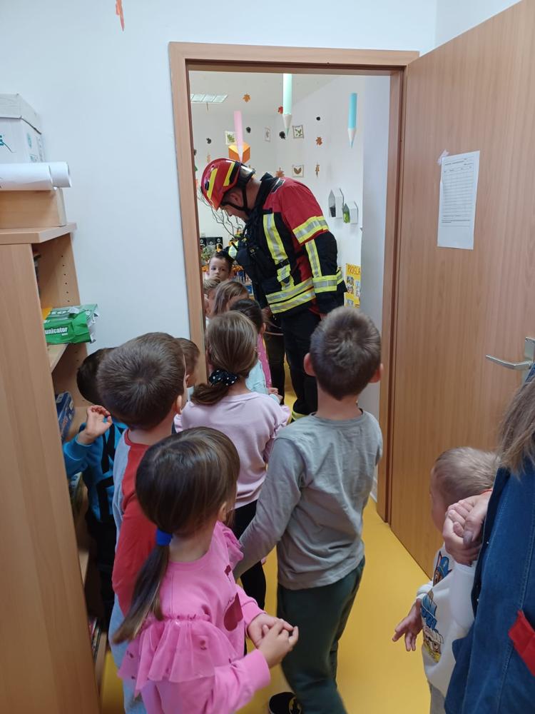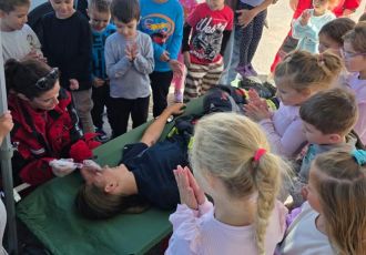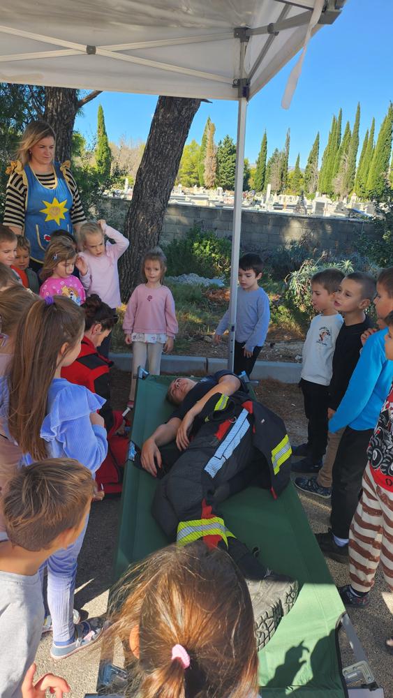 Uz pomoć vatrogasaca, policije i hitne pomoći djeca su imala priliku promatrati pravi postupak spašavanja ozlijeđene osobe - odgojiteljice koja je u vježbi "ozlijeđena" te ju je vozilo hitne pomoći odvezlo na daljnju "njegu".